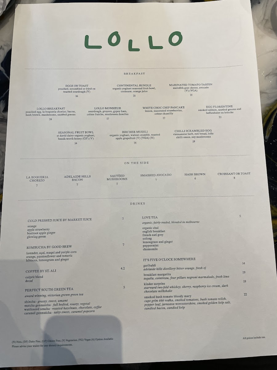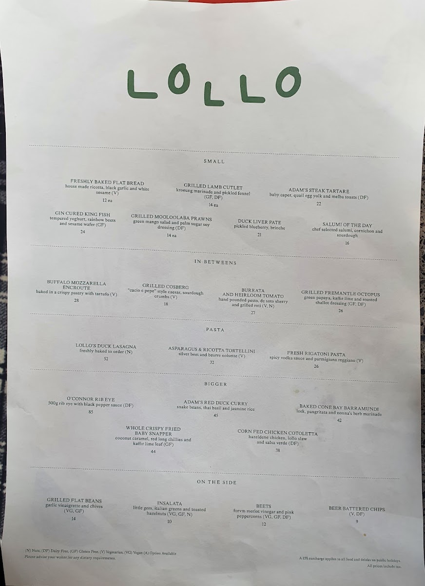 Introducing the Menu at Lollo